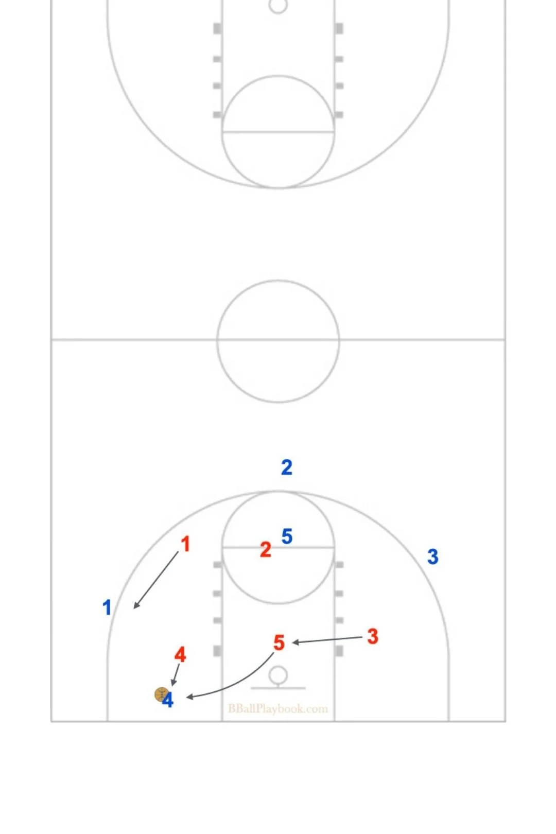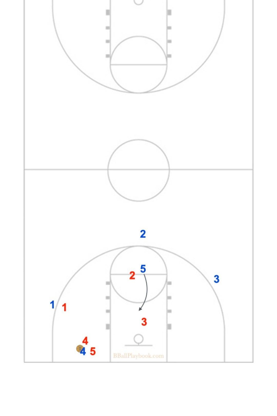 A common counter by the offense is for 5 (offensive post) to cut to the rim.